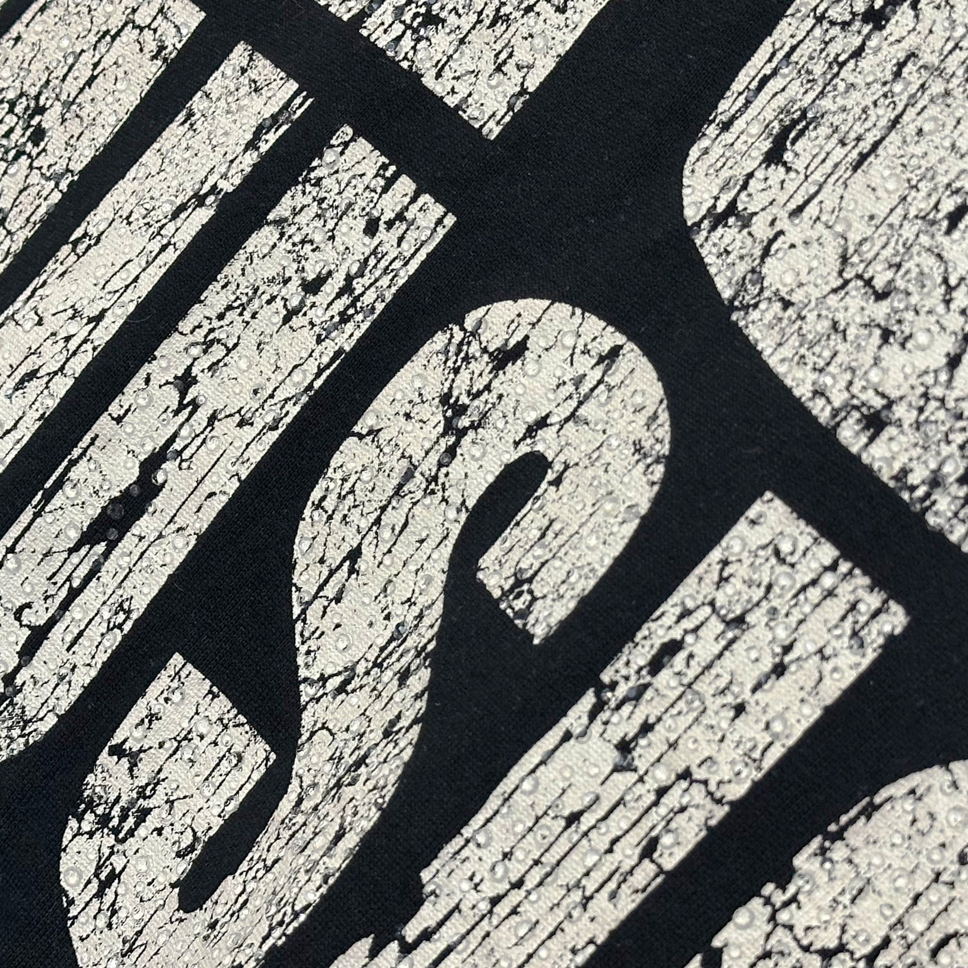 For those looking for a more relaxed fit, elevate your wardrobe with our latest heavy-weight oversized boxy tee. This black heavy-weight cotton tee features an oversized graphic overlaid with a caviar applique on the front as well as an oversized quote graphic overlaid with clear crystals on the back. Meticulously crafted from premium cotton and elevated with detailed graphics and unique textured elements, this unique tee is a piece that will not only feel great but will set you apart from the crowd.